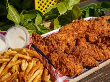 10 X Crispy chicken tenders, Large fries & 2 x dipping sauces